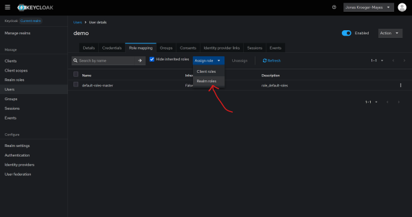 Once Keycloak is up and running a new admin user was created in the Keycloak realm and the default one deleted. The default realm is used for management of the Keycloak server itself. All glashack config is done in a new realm called glashack.