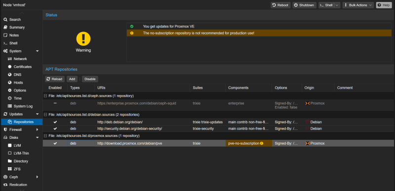 no-subscription repo for Debian updates