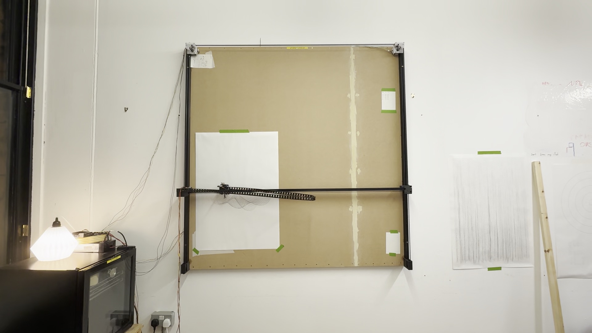 Beeg Plotter is an (approximately) 1500x1500mm wall-mounted plotter, running Klipper.